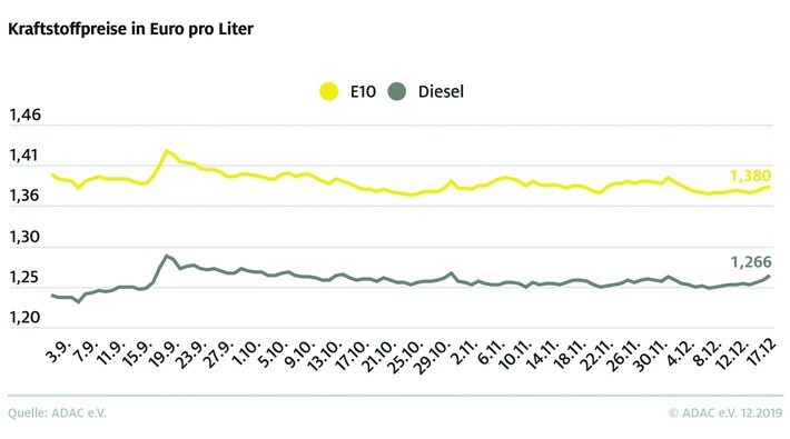 Nach Wochen eher sinkender Preise müssen Autofahrer beim Tanken wieder tiefer in die Tasche greifen. Laut aktueller Auswertung des ADAC kostet ein Liter Super E10 im Bundesmittel derzeit 1,380 Euro, das sind 0,5 Cent mehr als in der Vorwoche. Diesel verteuerte sich sogar um 1,2 Cent auf durchschnittlich 1,266 Euro je Liter.