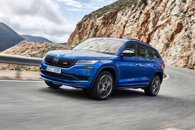 Der KODIAQ RS* glänzt mit dem stärksten Seriendiesel der Unternehmensgeschichte und trägt als erstes echtes Highperformance-SUV der Marke das Gütesiegel ,RS’. Mit 176 kW (240 PS) und einem mächtigen Drehmoment von bis zu 500 Nm erzielt der bis zu siebensitzige Allrounder beeindruckende Fahrleistungen: In 6,9 Sekunden sprintet der KODIAQ RS auf 100 km/h. Als erster SKODA besitzt er serienmäßig 20 Zoll große Leichtmetallräder. Sie sind im Design Xtreme-Anthrazit ausgeführt.