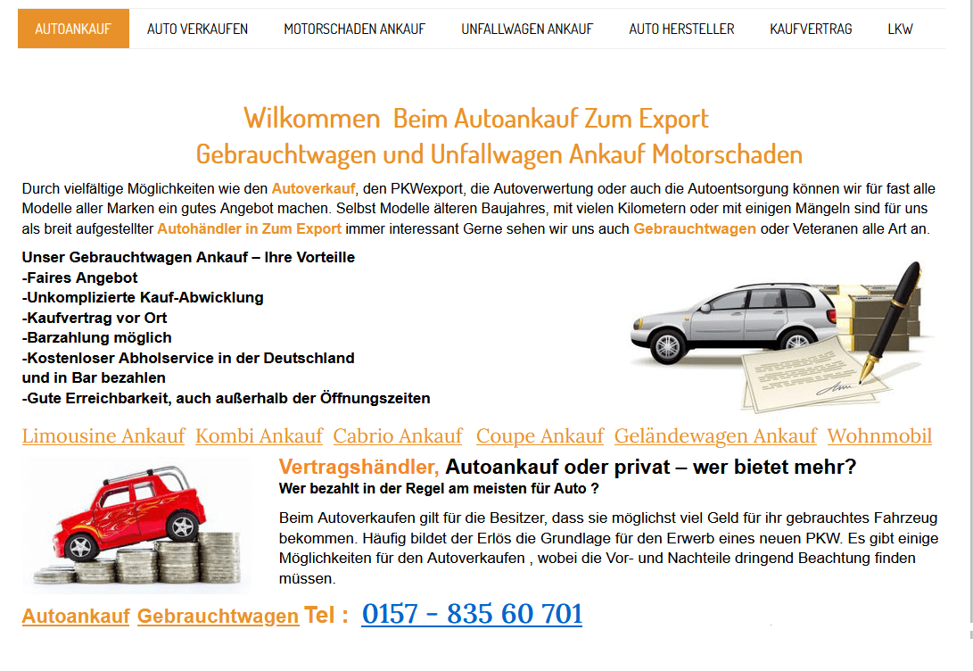Als Gebrauchtwagenhändler mit über Jahrzehnten an Erfahrungen auf dem Sektor des Autohandels zeichnet Autoankauf insbesondere seine Seriösität aus, mit der er als Ankäufer auf dem Markt handelt und die schnelle sowie unkomplizierte Abwicklung der Verkaufstransaktionen.