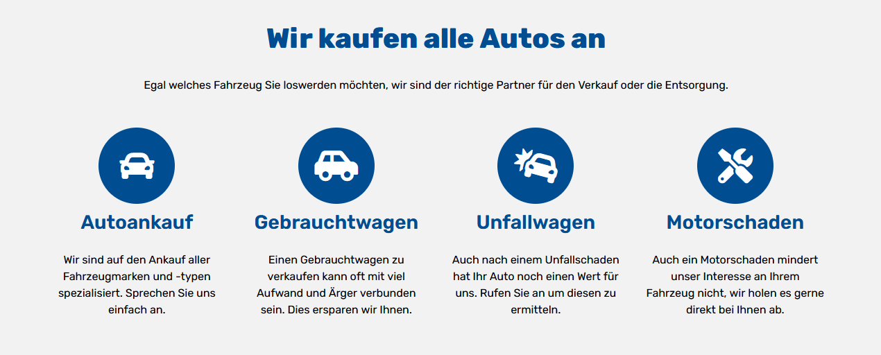 Autoankauf Düsseldorf Wenn Sie Ihren Unfallwagen verkaufen möchten oder einen seriösen Gebrauchtwagen Ankauf suchen, setzen Sie doch einfach auf die jahrelange Erfahrung sowie des überzeugende Kompetenz des Autoankauf Düsseldorf. Von der Erfahrung des Autoankaufs Düsseldorf profitieren nicht nur alle Besitzer gebrauchter Fahrzeuge, die sich auf faire Ankaufkonditionen verlassen können möchten, sondern vor allen Dingen diejenigen, die Unfallwagen verkaufen möchten. Der Ankauf von Unfallwagen erfordert oftmals eine ganz besondere Expertise. Aus diesem Grund schreckt so mancher – auch durchaus professionelle – Gebrauchtwagen Ankauf vor ihrem Kauf zurück. Zu viele Eventualitäten sind mit ihm verbunden.